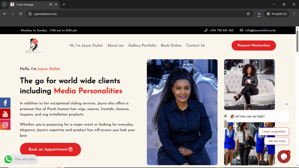 My name is Jayne Okoth better known as Jayne Stylist. I am an International hair stylist with 26 years Experience. My passion for doing hair started at a tender age of 8 years where I did my friends hair where I grew up.