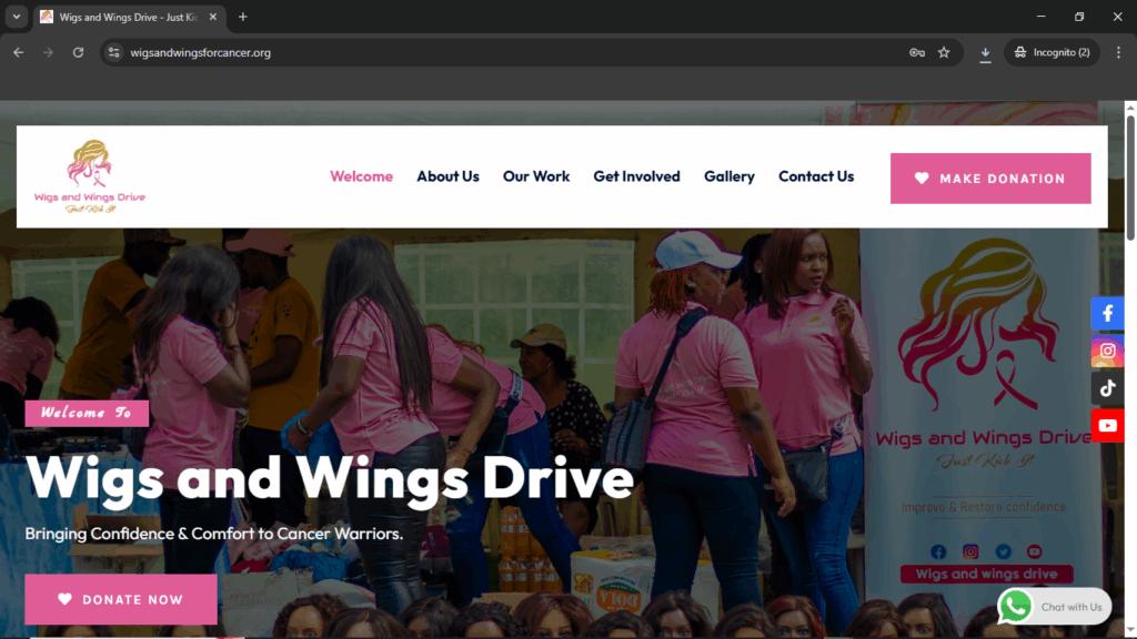 Wigs and Wings Drive is a registered Community-Based Organization (CBO) in Kenya, made up of hairstylists, beauticians, and makeup artists. Our team is committed to empowering cancer patients by offering free beauty services, human hair wigs, and essential care packages.